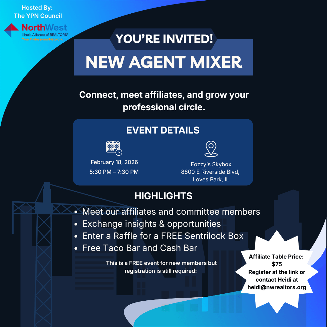 We invite you to attend a networking-focused event designed to help you connect with our affiliate members and representatives from our committees. All agents welcome, from newcomers to long-time members!